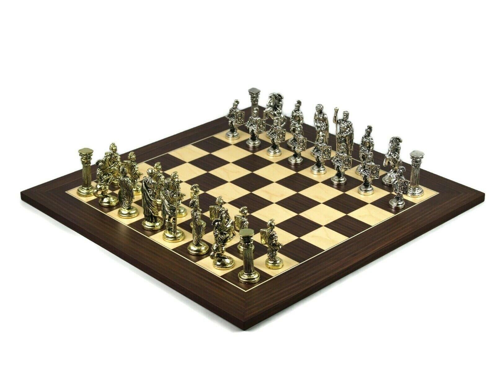 Metal Range Wooden Chess Set Macassar & Maple Board 20” Roman Metal Pieces 3.8”